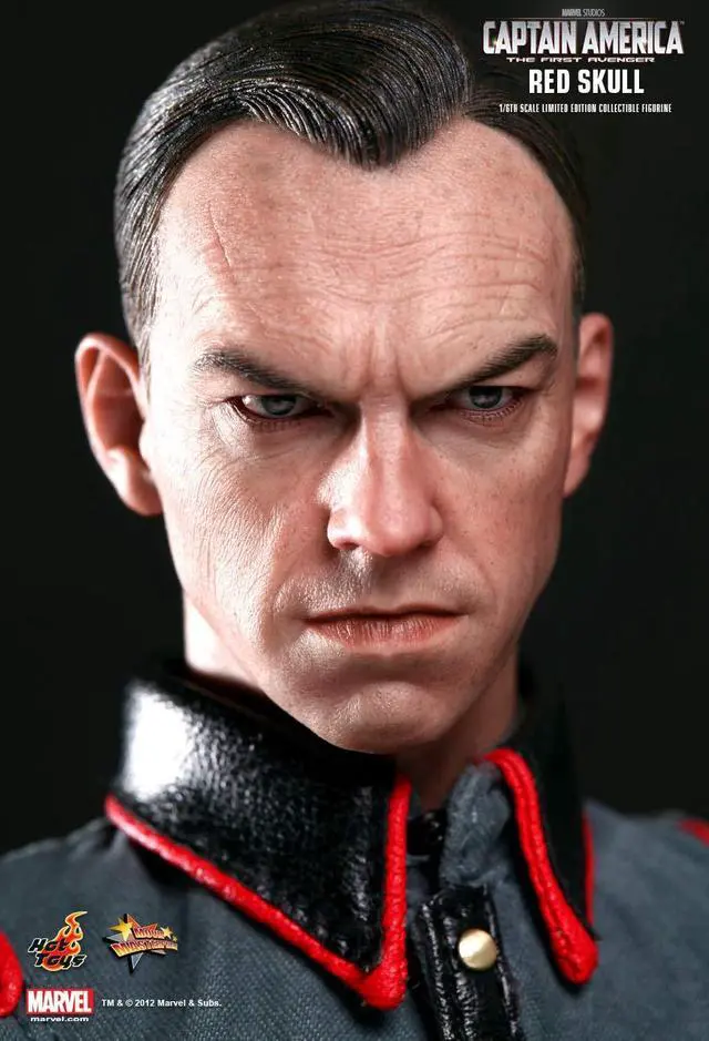 The Red Skull Sixth Scale Figure features:*Authentic and detailed fully realized likeness of Hugo Weaving as Red Skull (Johann Schmidt) in Captain America: The First Avenger*Approximately 12" tall*TrueType body with over 30 points of articulation*Movie-accurate facial expression with detailed wrinkles and skin texture*Six (6) pieces of interchangeable gloved palms including:*One (1) pair of relaxed palms*One (1) pair of fists*One (1) right palm for holding pistol*One (1) right palm for holding the Tesseract (Cosmic Cube)*Each piece of head sculpt is specially hand-painted*One (1) hydra uniform including one (1) black leather-like trench coat, one (1) field- grey shirt and one (1) pair of field-grey pants*One (1) pair of black boots*One (1) pistol*One (1) Tesseract (Cosmic Cube)*Figure stand with Red Skull nameplate and the movie logo*Officially licensed*Brand new in manufacturer packaging