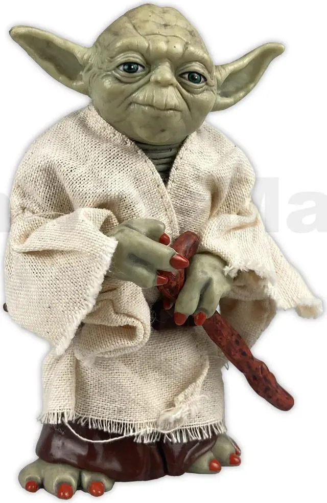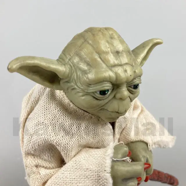 This is a nice detailed action figure of Master Yoda in 1/6 scale ( 11.5 cm figure). It comes with clothes, crutch, and belt. The arms is movable.