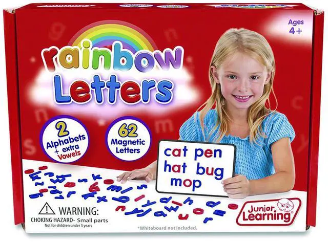 Rainbow Letters are a set of magnetic letters in a box. Includes 2 sets of the alphabet and an extra 2 sets of vowels. Vowels are color-coded in red and consonants are color-coded in blue. Perfect for building CVC words or completing alphabet arc activities.