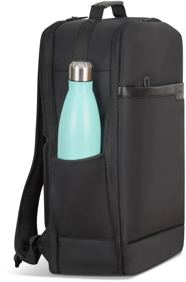 Navigate through bustling airports or rugged terrains with ease by attaching your backpack to your suitcase with the trolley strap, and benefit from the hidden zippered pocket for added security of your valuables. Stay hydrated throughout your travels with the side stretch/water bottle pocket