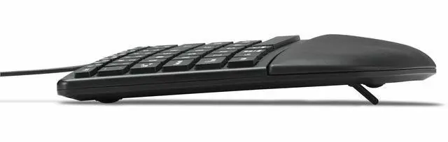 • Ergonomic Design - The thoughtfully designed compact curved key layout, built-in wrist pad, and front keyboard legs support optimal hand and wrist positioning for all-day ergonomic comfort and productivity.