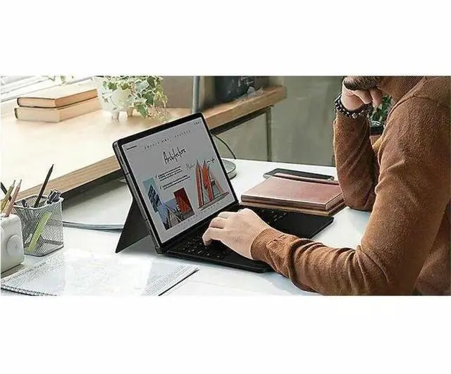 Versatile viewing comfortTake it all the way back to 150 degrees for a new level of freedom with the Book Cover Keyboard. Adjust the hinge on the back to find your perfect position to send emails, enjoy your favorite content and more from any angle. Enhance your productivity with wireless sharingWith Wireless Keyboard Sharing, you can connect to compatible Galaxy devices and type or navigate on them with ease.? It's like seamlessly switching to your phone and using it the same way as you would your tablet.