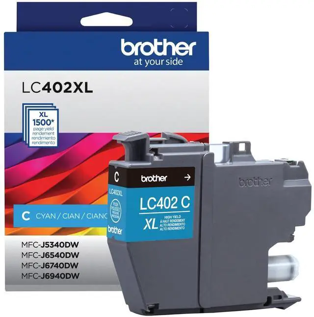 Always trust Brother Genuine ink for superior inkjet print quality and performance you can consistently rely on. These high-yield ink cartridges deliver consistent and professional results. All Brother Genuine ink cartridges are intelligently engineered to work seamlessly with your Brother inkjet printer for consistent, reliable results. Brother Genuine LC402XLBK is for use with Brother Color Inkjet All-In-One printers: MFC-J5340DW, MFC-J6540DW, MFC-J6940DW. Device Types: Inkjet Printer; Color(s): Cyan; Page-Yield: 1,500; Supply Type: Ink.