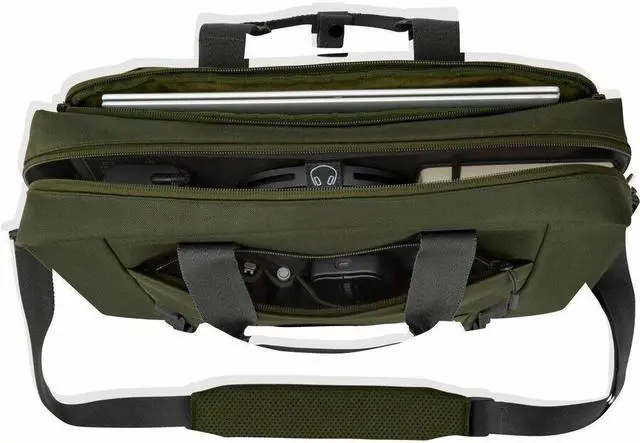 Change things up with the removable strap - and travel with ease. Built for Any Journey Travel to the office or across the globe with a modular bag that's ready for anything. Built to last, this waterresistant twill polyester laptop bag includes a comforting 3-year warranty. Durable plastic D rings and buckles endure heavy handling. Endless Organization Seize every day with a modular bag that keeps you organized on the go. Provides 22L total capacity and multiple pockets across bag, sleeve, and pouch. The two external pockets offer a cable pass through.