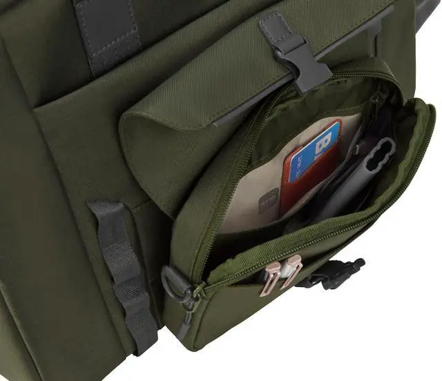 There's even a pocket for your bottle. The selfattaching fabric holds your stuff tight, while lockable zippers keep it safe. Built for a Better Tomorrow Here's a functional laptop bag that you can really feel good about wearing, with 51% post-consumer recycled plastic (PCR) (That's 46 plastic bottles) and FSC (r) certi? ed packaging.