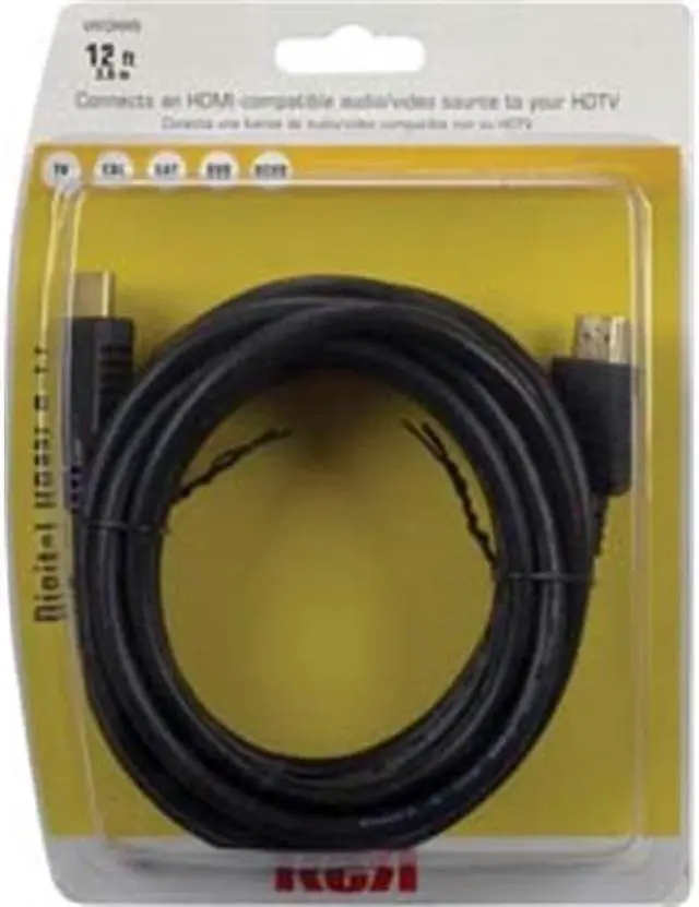 This RCA HDMI Cable comes in a 12 ft. length. It can be used to connect an HDMI-compatible audio/video source to your HDTV. it carries uncompressed high-definition video up to 1080p and digital audio signals.. Transfers A/V signals between components. Nickel-plated connectors for reliable contact. Protects against signal loss. Bare copper shielding. Easy installation. Nonslip ergonomic grip for easy use. 12ft