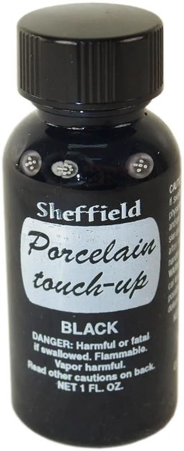 Sheffield, 1999, 1 OZ Bottle, Black, Porcelain Touch Up Paint, Chips, scratches and nicks disappear with just one application, washable, waterproof, chip-proof, For Porcelain Surfaces On Sinks, Stoves & Appliances, Withstands Temperatures Up To 400 Degrees, One coat does the job! Dries to a hard, bright finish, Lead Free, Handy Brush Cap.