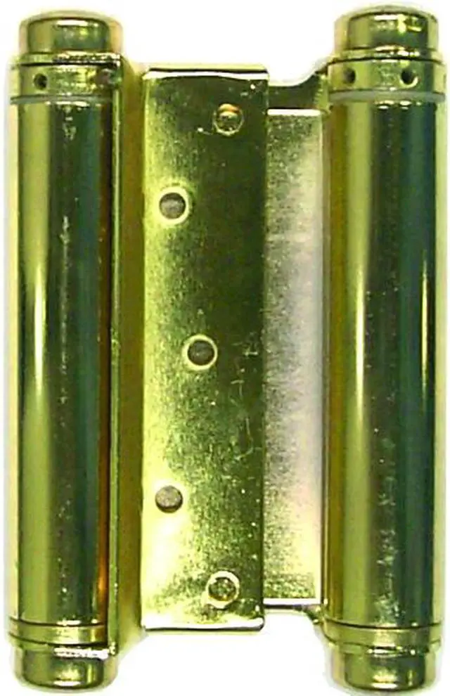 Tuff Stuff, 86856, 6", Double Action Spring Hinge, Square Corner, Painted Brass Finish, 1 Pair - Box, Double Acting Spring Hinges, Template hole pattern, Heavy duty for in or out swinging doors, Adjustable tension spring, Furnished with screws.
