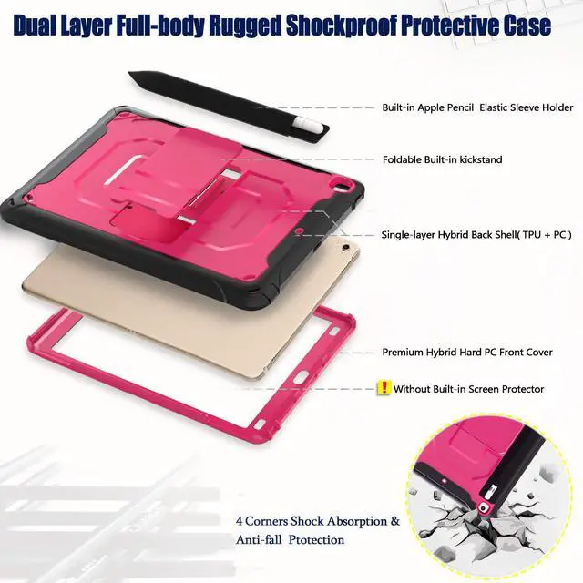 Military Protection: This iPad 9.7 Case Made of premium shock-absorbing TPU and hard PC, dual layer design provide good rugged protection from drop and impact. Raised edges design provide extra protection for screen and lens.