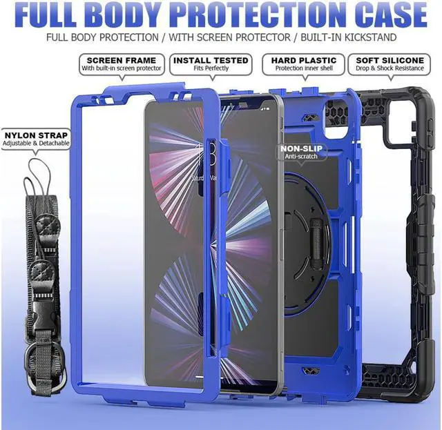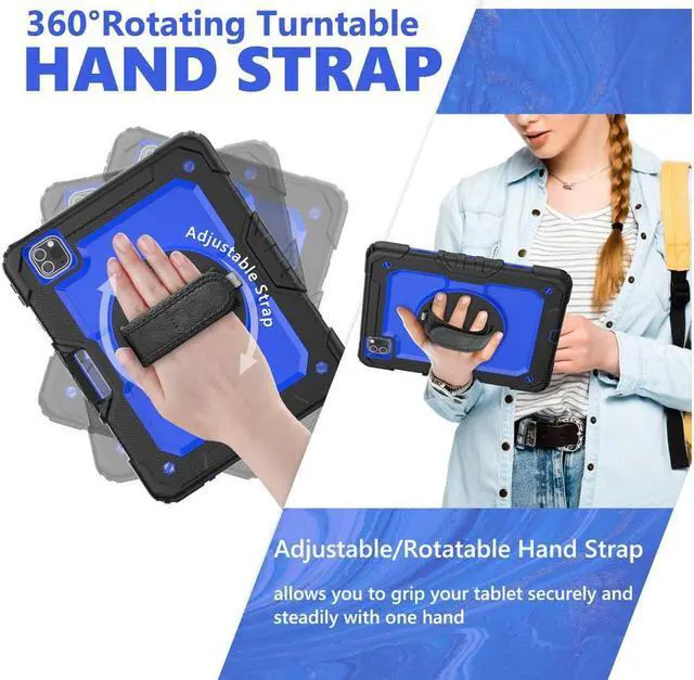 SHOULDER STRAP --- This iPad comes with Adjustable and Detachable Shoulder Strap. Let you carry your iPad Pro 3rd Generation on any occasion, such as traveling, car seats, office, and classroom. You can also take the shoulder strap off when you don't need it.