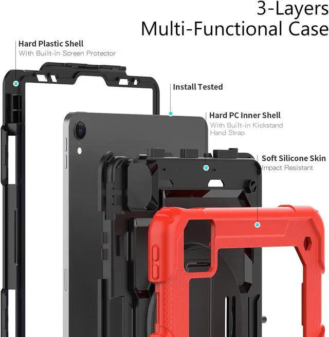 • [Protection] 3 layers protection combined with PC front cover that built-in screen protector + hard PC back cover + soft silicone outer shell. Providing protective sleeve for your tablet to prevent accidental drops/shocks/scratches.