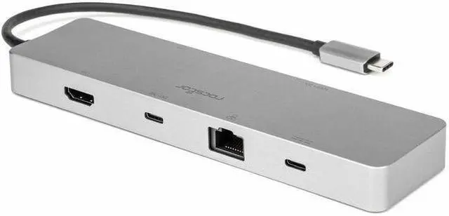 Designed for efficiency and reliability, this multiport adapter includes advanced features such as high dynamic range (HDR), multiple color formats, and enhanced protection against short-circuit, over-current, and over-voltage. Its compact design makes it an ideal addition to any workspace, providing robust functionality without taking up much space. Whether you need to connect to an external display, transfer data quickly, or charge your devices, the Rocstor USB-C 6-in-1 Dual Display Multiport Portable Adapter is the perfect solution for all your connectivity needs. Backed by Rocstor 3-year limited warranty and lifetime free technical support.