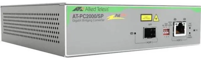 Powering Remote Devices Allied Telesis PC Series media converters are the ideal solution for powering remote devices such as IP phones, video cameras, wireless access points, etc., which are more than 100m from a Power over Ethernet switch. The PC2000/SP features an SFP port supporting both 100MB and 1000MB optics and a 10/100/1000T Twisted Pair Port. Allied Telesis offers a wide variety of SFPs featuring multimode, single mode and BiDi optics. The fixed fiber-optic port on these devices is available in SC (on 100MB and 1000MB devices) and LC (1000MB only). With these devices you can achieve distances up to 2 km (100MB) or 550 m (1000MB).