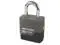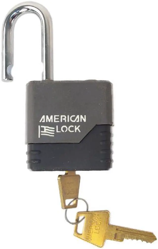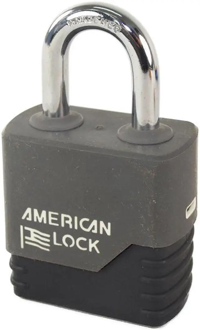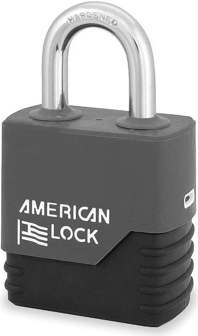 Keyed Padlock, Weather Resistant, Opens with Key 26453, Control Key Registration Required No, Key Control #26453, Shackle Dia. 5/16 In., Shackle Height 1-1/8 In., Shackle Width 3/4 In., Key Type Alike, Shackle Material Boron Alloy, Body Size Width 2-7/32 In., Body Size Thickness 1-3/16 In., Body Length 2-3/16 In., Body Material Steel, Number of Pins 5, Hardened Boron, Rectangular, Grey, Steel, Weatherability Superior Corrosion Resistance, Shackle Configuration Open, High Security High- and Standard-Security Weather-Resistant PadlocksCovered padlocks withstand harsh weather and corrosive environments. 2 brass keys included. Models with BumpStop technology stop the transfer of force from the bump key to the pins, preventing rotation of the cylinder so the padlock remains locked.WeatherBuilt Solid SteelPadlocks have a patented keyway cover and patent-pending shackle seals for extreme weather and corrosion resistance.
