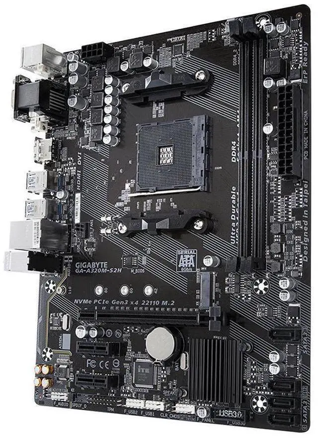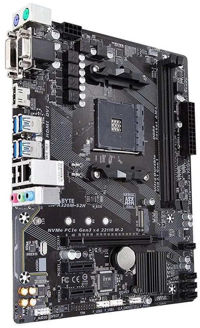 Gigabyte GA-A320M-S2H AMD Chipset A320 Socket AM4 DDR4 HDMI DVI-D D-Sub USB SATA 6Gb/s Micro ATX Desktop Motherboard.