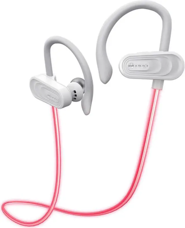 Tokk TMX09W Glow In-Ear Bluetooth Earbuds with Microphone (White) 10 mm drivers, Frequency range: 20 Hz to 25 kHz, Bluetooth(R) 5.0, Customized aramid fiber compound material in moving-coil driver for maximum output, Laser-lit, glow-in-the-dark Opti-Fiber Hybrid cable provides fun accent that also increases visibility of wearer in low-light situations for safety, optional free app to engage glowing function, Battery life: up to 200 hours on standby, up to 6.5 hours with laser off and 3 hours with laser on, Includes multiple sizes of earbud tips, micro USB charging cord, quick guide, and instruction manual, White,