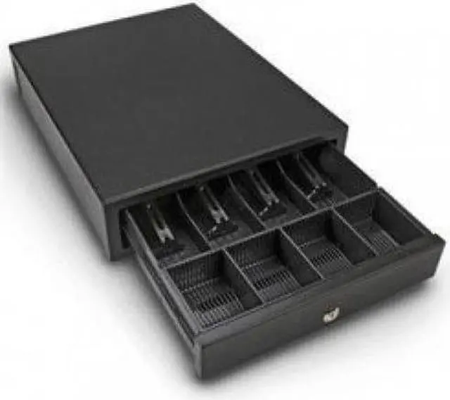 The MCD100 Portable Cash Drawer is the ideal complement for the Royal 100CX Portable Cash Register or any other portable cash register. It features a sturdy tamper proof metal enclosure, locking drawer, 4 bill slots and a removable 4-slot coin tray. Push the drawer to spring open for fast access.. Spring-loaded clips to keep bills down & secure. 4-slot coin tray--removable & expandable by adding coin slots partitions. Key-locking drawer--metal lock secures contents. Spring release. Nonskid rubber feet