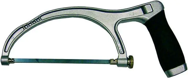 Tuff Stuff, 50324, 6" Mini Hi-Lo Aluminum Hacksaw Frame With Special Blade, Ergo Grip, I-Beam Frame, Comfort Handle, Adjustable Blade Tension, Cuts In 6 Positions, 6" 24TPI Blade Attached, Uses Replacement Blades TV #602-633. 6" Mini E. Z. Fit Aluminum Hacksaw Frame With Special Blade Ergo Grip. Cast Aluminum I-Beam construction. Sloped nose for Hard To Reach Areas. Ergonomic rubber coated grip.