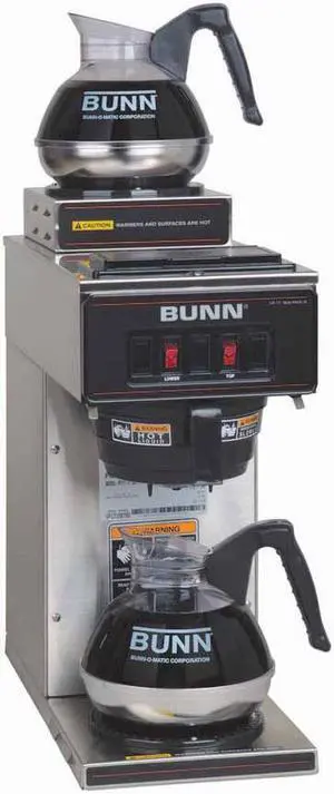 Features: The BUNN AXIOM DV APS Dual Voltage Airpot Coffee Brewer with LCD offers a programmable digital temperature control coupled with innovative pre-infusion technology to provide optimum flavor extraction and a consistent, quality product for customers. An LCD display makes it easy to monitor temperature settings and batch information. Electronic diagnostics and a built in tank drain make cleaning and servicing simple. Flip a switch and change to 120 volt/12.5 amp, 120/208 volt/13 amp or 120/240 volt/15 amp. Airpot sold separately.