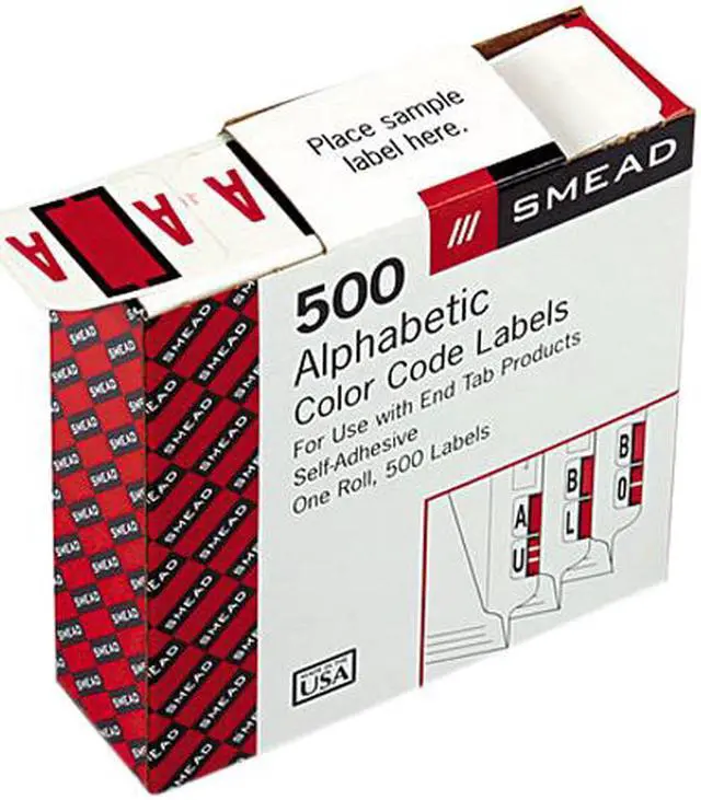 Smead 67071 A-Z Color-Coded Bar-Style End Tab Labels, Letter A, Red, 500/Roll