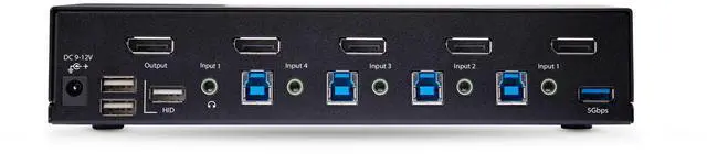 • Share and switch between two USB-A and DisplayPort-enabled computers, using this DisplayPort KVM Switch. Share an 8K 60Hz DisplayPort monitor, a keyboard and mouse, two USB 5Gbps devices, and two additional USB 2.0 devices.