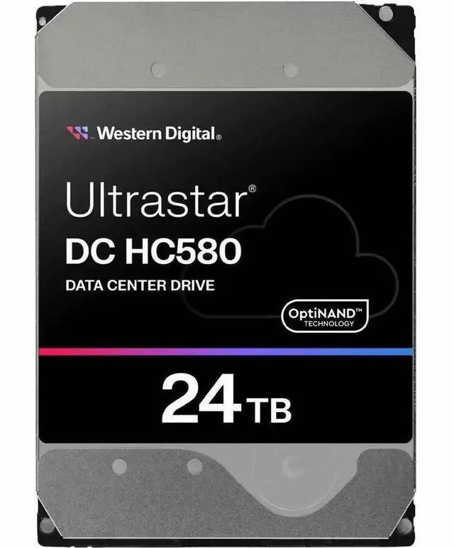 WD Ultrastar DC HC580 WUH722424ALE6L1 24 TB Hard Drive - 3.5" Internal - SATA (SATA/600) - Conventional Magnetic Recording (CMR) Method - Server Device Supported - 7200rpm - 550 TB TBW (0F62795)