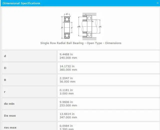 • NTN 6048 Single Row Radial Ball Bearing - Open Type 240x360x56mm