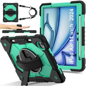 WERLEO Case for iPad Air 11 Inch M3 2025 M2 2024 7th/6th Generation with Rotating Stand Pencil Holder Hand/Shoulder Strap, Heavy Duty Shockproof Protective Cover Mint Green
