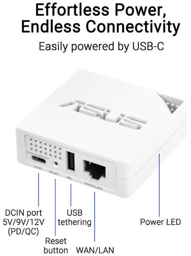 ASUS RT-AX50 Go Dual-band WiFi 6 Portable Travel Router, 1500 Mbps, 4G/5G Tethering, Public WiFi (WISP) Mode, VPNs, RV/Cruise/Mobile, USB-C Power Delivery, Pocket size, Easy Setup