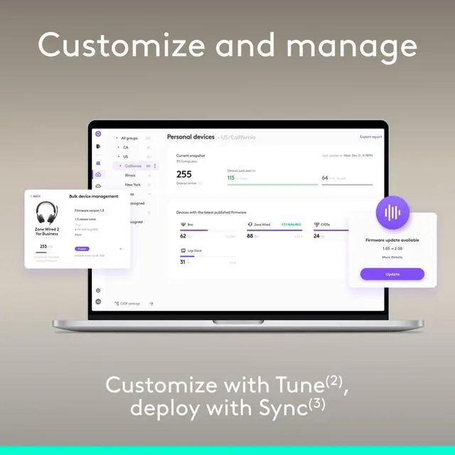 Securely deploy firmware updates from the cloud with Logitech Sync — no end user action required5. Updates are installed automatically, ensuring the headset remains up to date and secure.