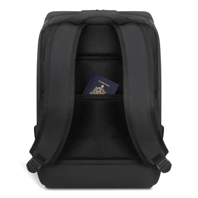 The backpack features a single large compartment, offering ample space to organize your essentials efficiently. Navigate through airports with ease by attaching your backpack to your suitcase with the trolley strap, and benefit from the hidden zippered pocket for added convenience. Elevate your daily commute or travel experiences with the Tech Ba