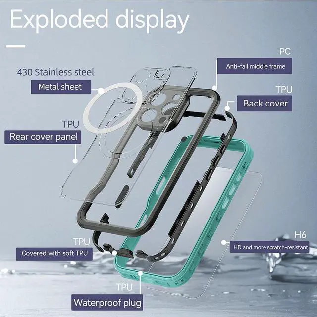 • IP68 Waterproof --- The iPhone16 Pro case is certified with an IP68 waterproof rating, allowing it to be submerged up to 10ft/3m for one hour while providing protection against dust, dirt, water, snow, and rain. Its comprehensive body protection design enables underwater photography and videography. Additionally, the washable feature facilitates easy cleaning, ensuring that both your phone and case maintain a pristine appearance while safeguarding against scratches and fading