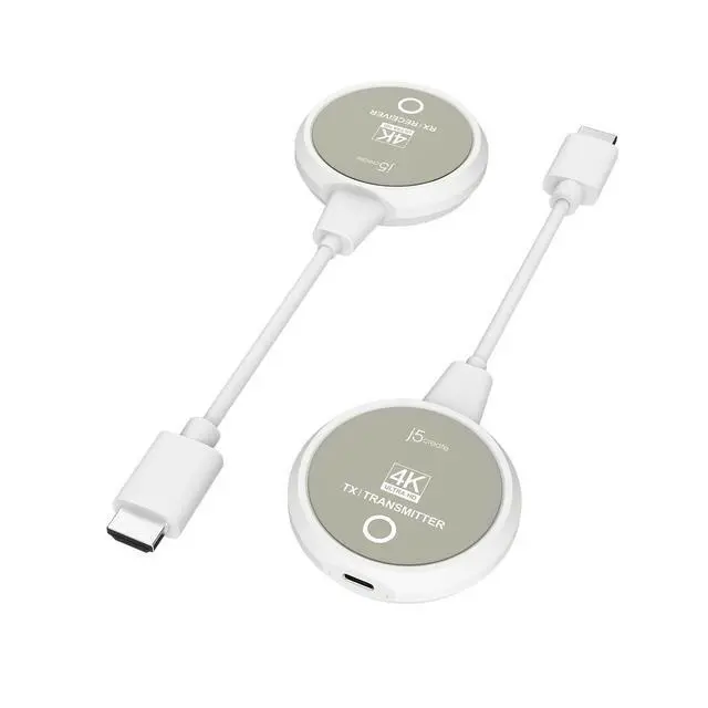 j5create ScreenCast 4K Wireless HDMI Transmitter and Receiver Wireless HDMI Extender Support 4K30Hz / 1080p60Hz 2.4/5GHz for Laptop/PC/Player to HDTV/Projector (JVAW75)