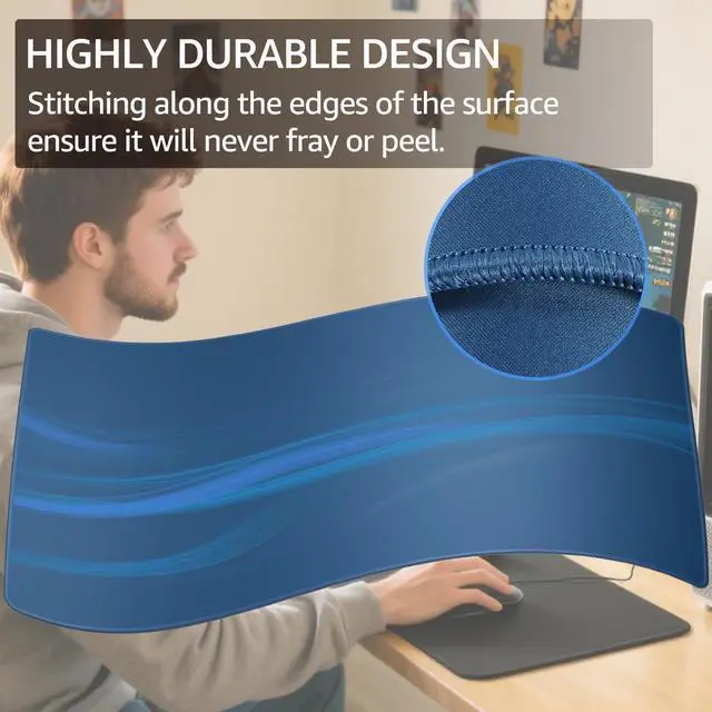 The surface is made from micro-weave cloth to support smooth mouse movement and reliable tracking for both optical and laser sensors. Reinforced stitched edges help maintain the shape of the pad and reduce edge wear over time. The non-slip rubber base helps keep the mouse pad stable on various desk surfaces during use.