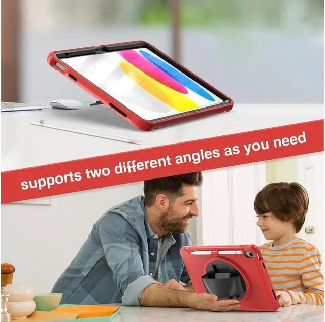 Hand Strap & 360° Swivel Kickstand: The hand strap allows you to connect your iPad with one hand. The iPad case has a 360° rotatable folding stand, which provides various angles such as horizontal and vertical. Free your hands and make it easier to use your tablet when you traveling, working. Perfect for students, teachers, businessmen, engineers, etc.
