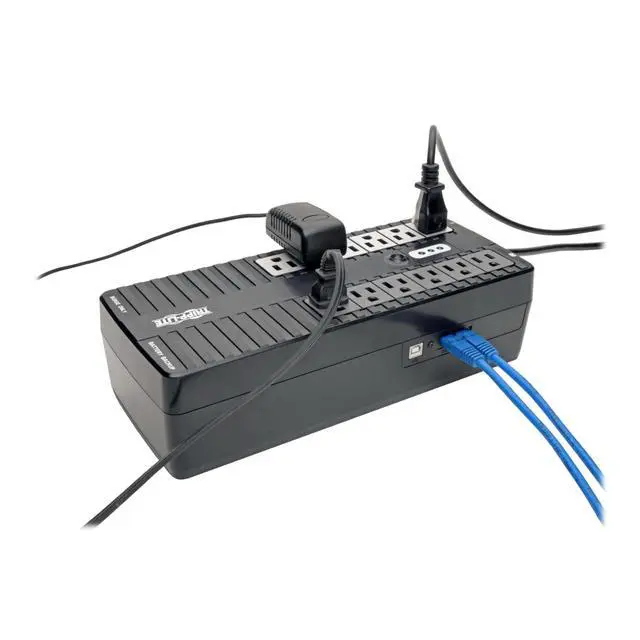 Tripp Lite's INTERNET750U standby UPS offers complete protection for PCs, workstations and other sensitive electronics in an attractive, ultra-compact, mountable housing. Prevents data loss and system downtime by providing battery-supported AC output during brownouts and blackouts. 12 widely spaced output receptacles accommodate large transformer plugs without blocking outlets. 6 outlets provide full battery support and surge suppression for computers, monitors and other vital system components. 6 additional surge suppression-only outlets are ideal for printers and other accessories not requiring battery support. Single-line telephone suppression jacks protect directly connected modems, fax machines, cordless phones or other peripherals sharing a standard dialup or DSL phone line connection.