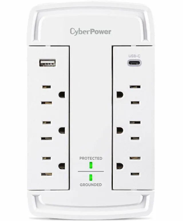 CyberPower CSP6WSUC 6-Outlet Wall-Tap Surge Protector with USB-A and USB-C Port