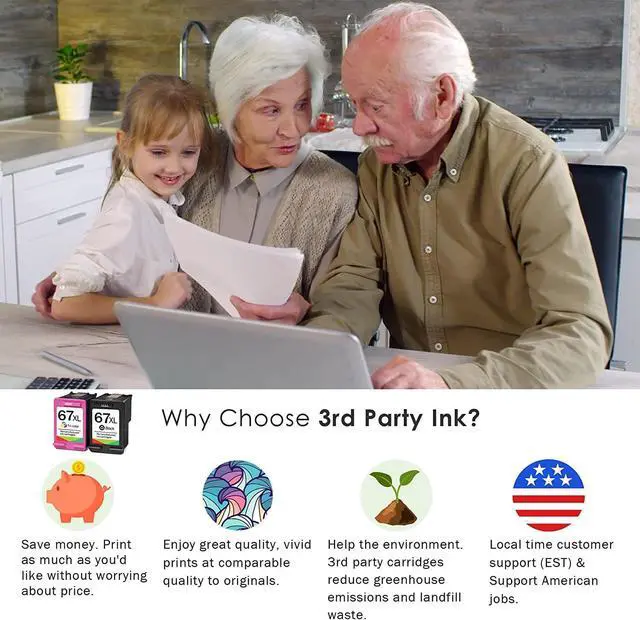 3rd party cartridges are cheaper, saving on average 30%-60% vs name brand cartridges, letting you print more without worrying about cost.High quality non-OEM ink provide excellent printing performance, equivalent to original ink. Perfect for your home, school, or office printing needs. These cartridges are also recyclable and help reduce the carbon footprint, raw material use, and landfill waste.