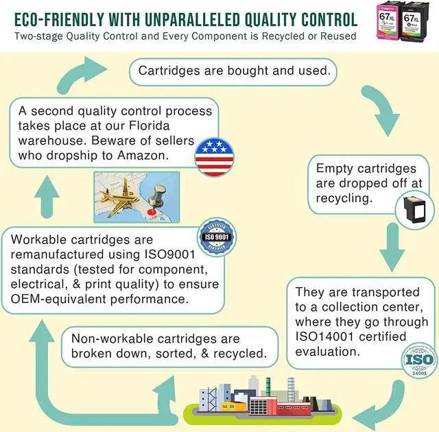 Our company is US-based, and our main focus was to put maximum effort into quality control to produce reliable, high quality cartridges that work smoothly with ones printer and last longer. This is why we quality test our ink twice; at manufacturing and again before our inventory is shipped to Amazon's warehouses for fulfillment. Testing includes component testing, testing of electrical circuitry, and print quality testing. The results are sharp and vivid prints that match the performance of original ink, with lifelike images, vivid colors, and clear detailed text. Beware of drop shippers who ship from overseas directly to Amazon.