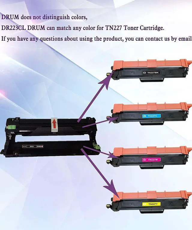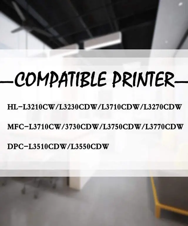 Product Name: Compatible Brother DR-223CL Drum Unit Package Contents: 1x DR-223CL Drum Unit Black Page Yield: 18 000 pages per DR-223CL Black Drum Unit Compatible for: HL-L3210CW HL-L3230CDW HL-L3270CDW HL-L3290CDW MFC-L3710CW MFC-L3750CDW MFC-L3770CDW HL-L3230CDN Laser Printer ADVICE: If you are not sure which ink unit is required please check the label of your old ink unit cartridge. It will help you search the correct required unit model. WARRANTY: 30 days for a refund or replacement from the date of purchase If you have any questions or concerns please do not hesitate to send us an email. A customer service representative will gladly assist you. For customers outside of the 48 continental US states that would be using a third party forwarder to receive products, we recommend not to place an order. We only ship to the 48 US continental states and anything that ships outside these states are no longer covered by our warranty.