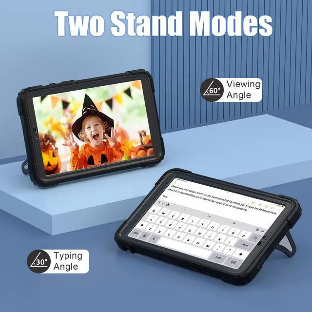 The 2 kickstands provide both viewing and typing angle , frees your hand when you are watching a favorite movie or typing.