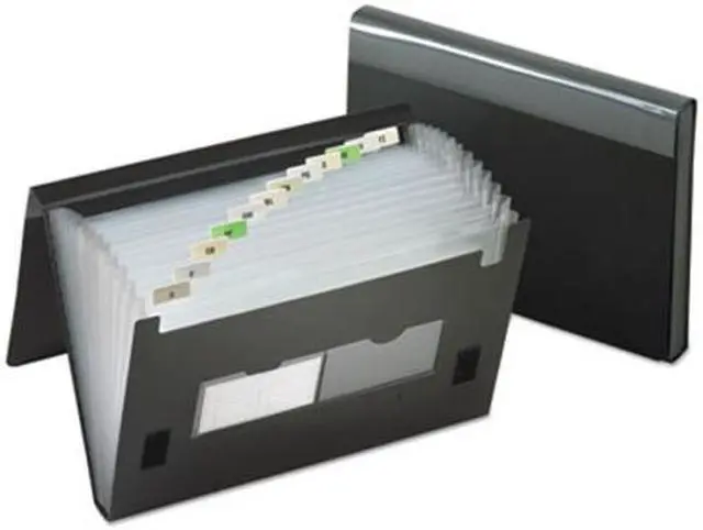 Locate, organize and protect documents with this simple and durable expanding file. Constructed of textured polypropylene20 times stronger than paper based material. 12 built-in tab dividers with A-Z and blank inserts add many organizational options. Two interior window pockets with contents card; full-length label on spine. Fast and convenient hook & loop closure. Pocket/Wallet Type: Files/Papers; Size: Letter; Overall Expansion: 4"; Closure Type: Hook & Loop.