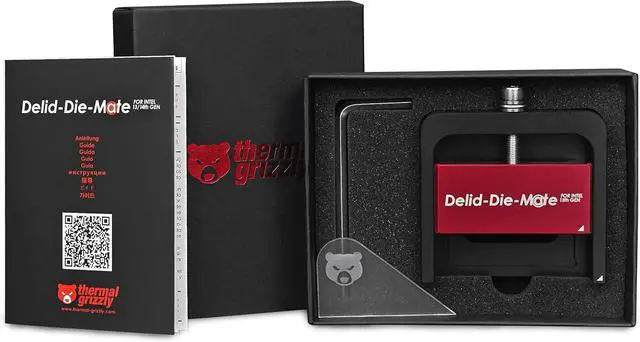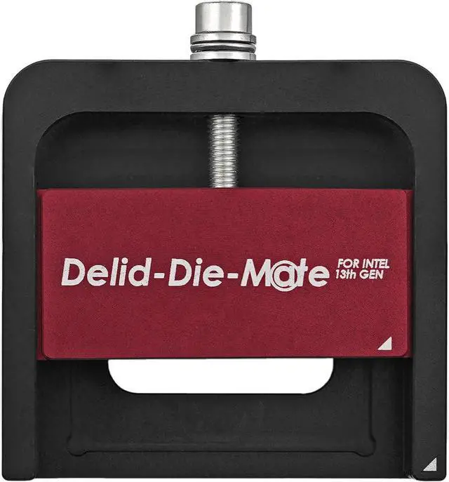 The Delid-Die-Mate Intel 13th Gen is a tool for removing the heat spreader ("delidden") on Intel processors for socket LGA1700. By removing the heat spreader, the CPUs can be cooled via "direct die", for example. With the so-called "direct die", the CPU cooler is mounted directly on the processor chip. By omitting the heat spreader in the cooling circuit, a significantly optimised heat transfer from the die to the CPU cooler is possible. Compatible with 12th/13th/14th Intel Core generationDelidding toolMade of aluminiumWhy "Delidding" & Direct Die method for Intel processors? Delidding is the process of removing the processor's heat spreader.