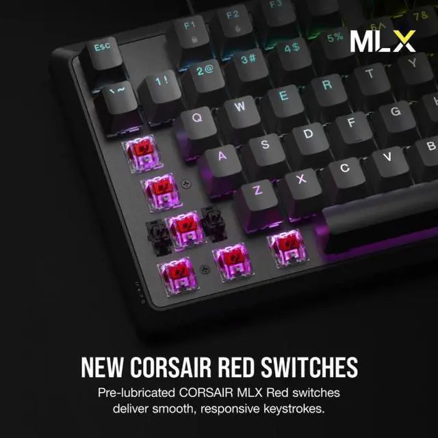 Play and type with pre-lubricated CORSAIR MLX Red v2 linear mechanical switches, for smooth, responsive keystrokes.