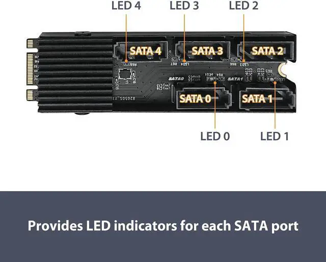 - Provides LED indicators for each SATA port