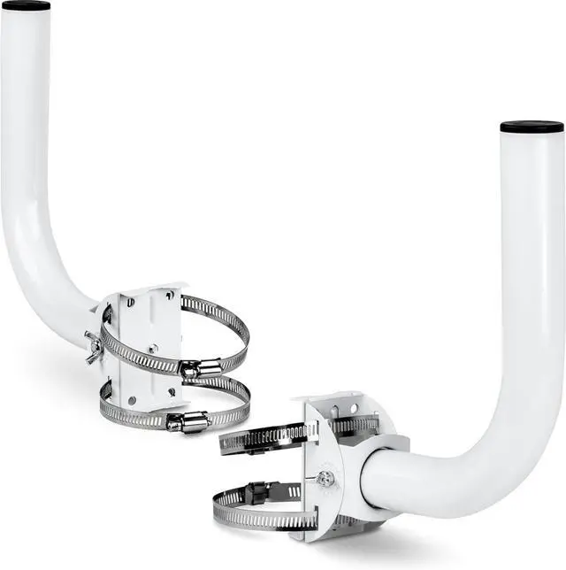 The 2 Pack Universal Wall / Pole Mount Bracket, model TEW-P012K, includes a pole mounting bracket and mounting hardware. The pole mount bracket can be installed on a wall or a pole for flexible installation. The bracket is compatible with TRENDnets wireless access points and other devices. This kit includes two TEW-P01 pole mount brackets.