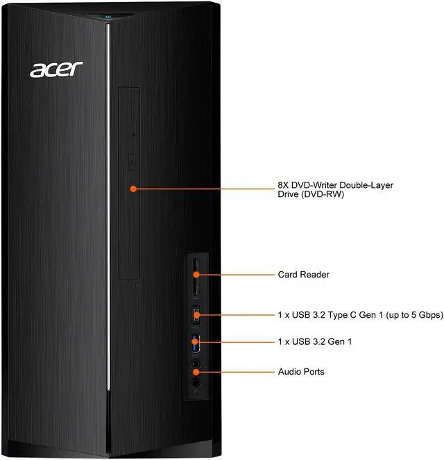 | Front USB | 1 x USB 3.2 Type C Gen 1 (up to 5 Gbps) 1 x USB 3.2 Gen 1 |