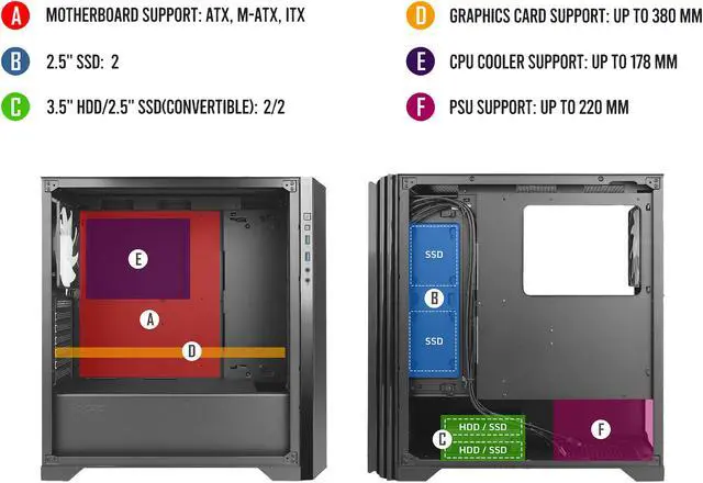 The tool-free tempered glass side panel allows you to remove it with ease. Without any thumbscrew holes on the tempered glass, its solidity is getting stronger, ensuring you a stable quality.