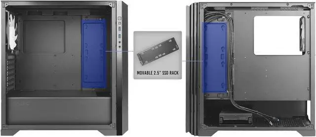 The movable 2.5" SSD rack can accommodate 2 x 2.5" SSDs.