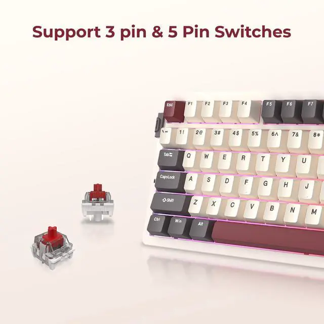 • Featuring a 75% layout with 80 keys, Gasket mount, and hot-swappable sockets for solder-free DIY customization.